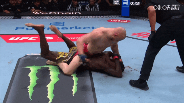 不过派弗的重拳也让人倍感心惊,每一次出击都势大力沉。回合末尾,派弗成功抱摔,将阿迪萨亚摔倒至笼边,不过时间所剩无几,他也没能扩大优势。